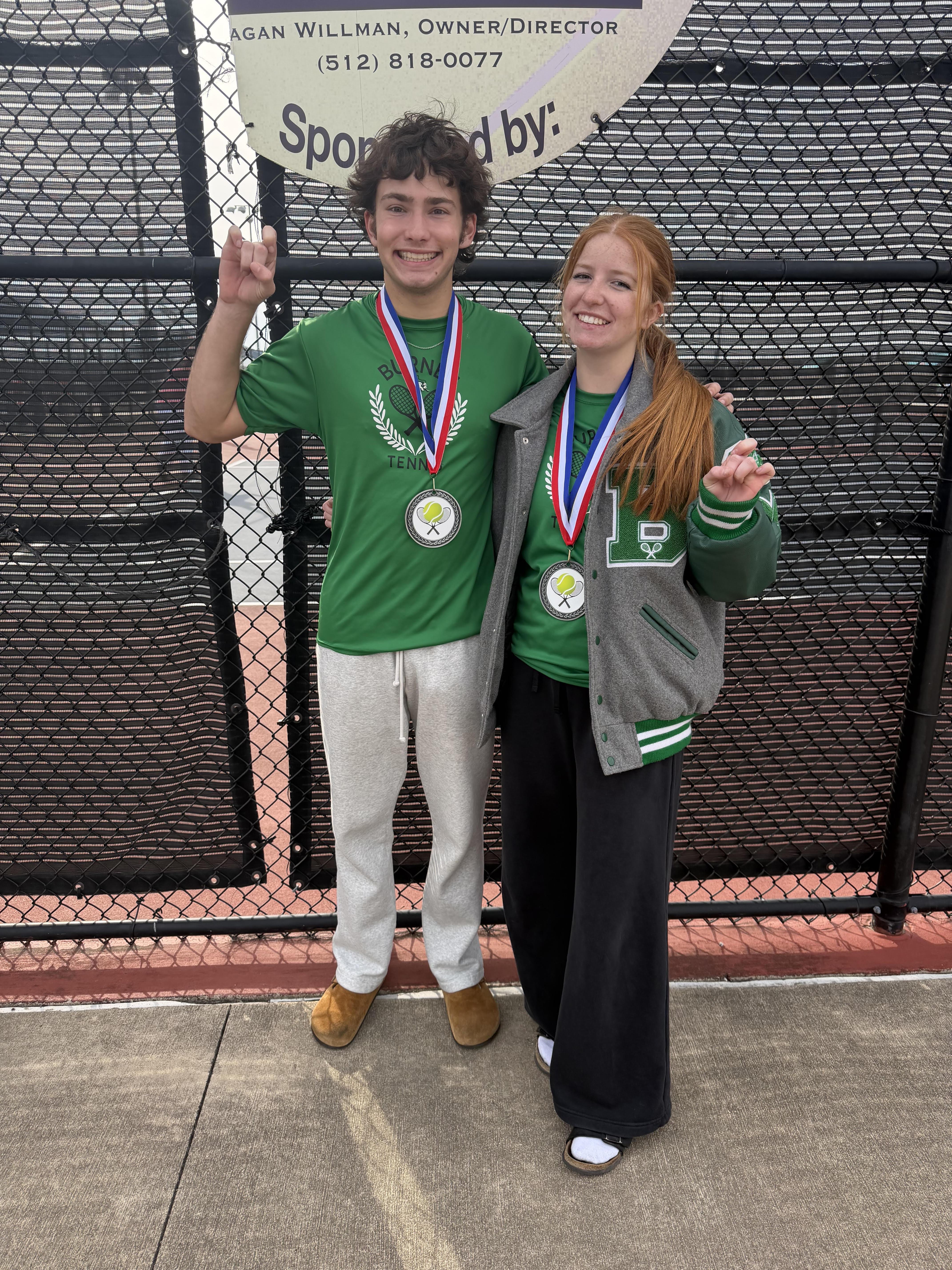 Alex Burns and Callen Smith competed in the mixed doubles division and had an impressive showing. They opened the tournament with an 8–6 win over Dripping Springs, followed by a victory against Austin Anderson to advance to the championship match. They fell just short in the finals (5–7, 4–6), earning second place in their first tournament of the season. This result is especially impressive considering the high level of competition they faced and that they were unable to practice all week due to the ice storm.